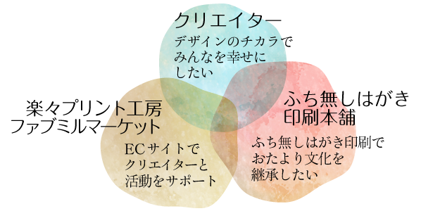 ふち無しはがき印刷本舗では、「年賀状や暑中見舞いなど、はがきで“おたより”を送る心温まる日本の文化を、将来にわたって継承していきたい」という想いから、全国のクリエイターさんたちの思いに溢れたはがきデザインを募って、おたよりを手軽に作ることができる工房のようなサイトがあったら素敵だと考えました。