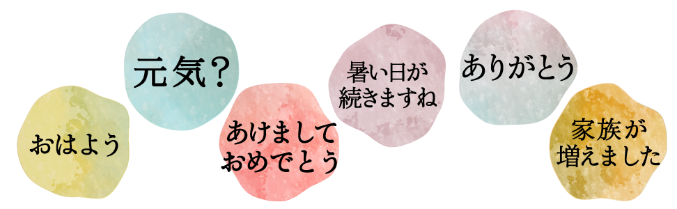 年賀状・喪中はがき・寒中見舞い・暑中見舞い・引越はがき・結婚報告・出産報告 など