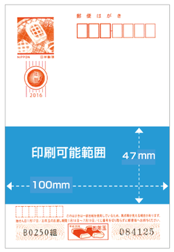 印刷範囲は、ハガキ内 100×47mmの範囲(画像参照)です。