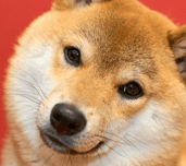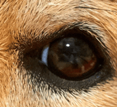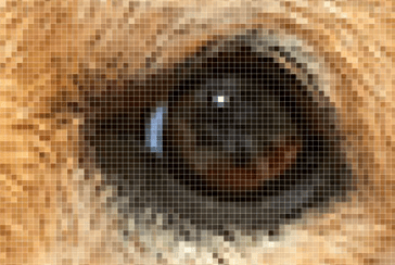 この犬の写真は、年賀状に最適な106mm×154mmサイズに切り取られています。この画像は、横2112個、縦1461個の画素でできています。拡大して画素を確認してみましょう。