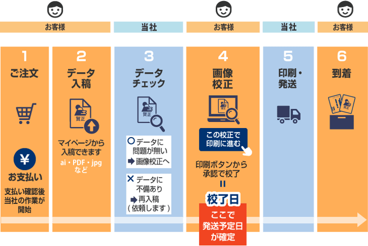 データの作成、データ入稿、データ確認、印刷の承認までの時間も余裕を持って考慮の上、納期を想定してください。