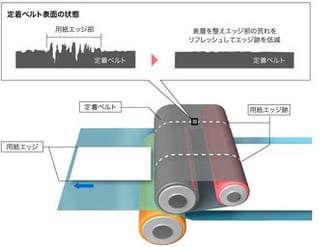 新しい印刷機では、搬送ベルトの平坦性を常に監視し微妙なローラーの表層の荒れをリフレッシュ。光沢スジの低減が実現しました。
